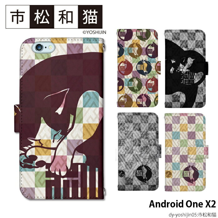 Android One X2 ケース 手帳型 アンドロイドワン Y!mobile ワイモバイル カバー デザイン yoshijin 猫 市松 和 ネコ 動物 アニマル